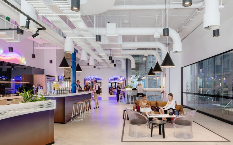 383 George street was to be a flagship project in Sydney and the future headquarters of WeWork’s offices there. With all of the existing exposed concrete, white painted exposed brickwork and barrel vaults, it was clear that the space was calling for a more industrial approach. The space was freshened up by introducing dichromatic film behind polycarbonate sheets, framing fluted glass screens and using recycled re-bars throughout. Equally, we included a lot of colourful artwork and murals to make the space feel more playful.